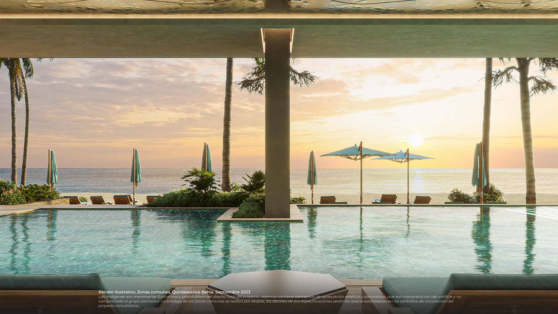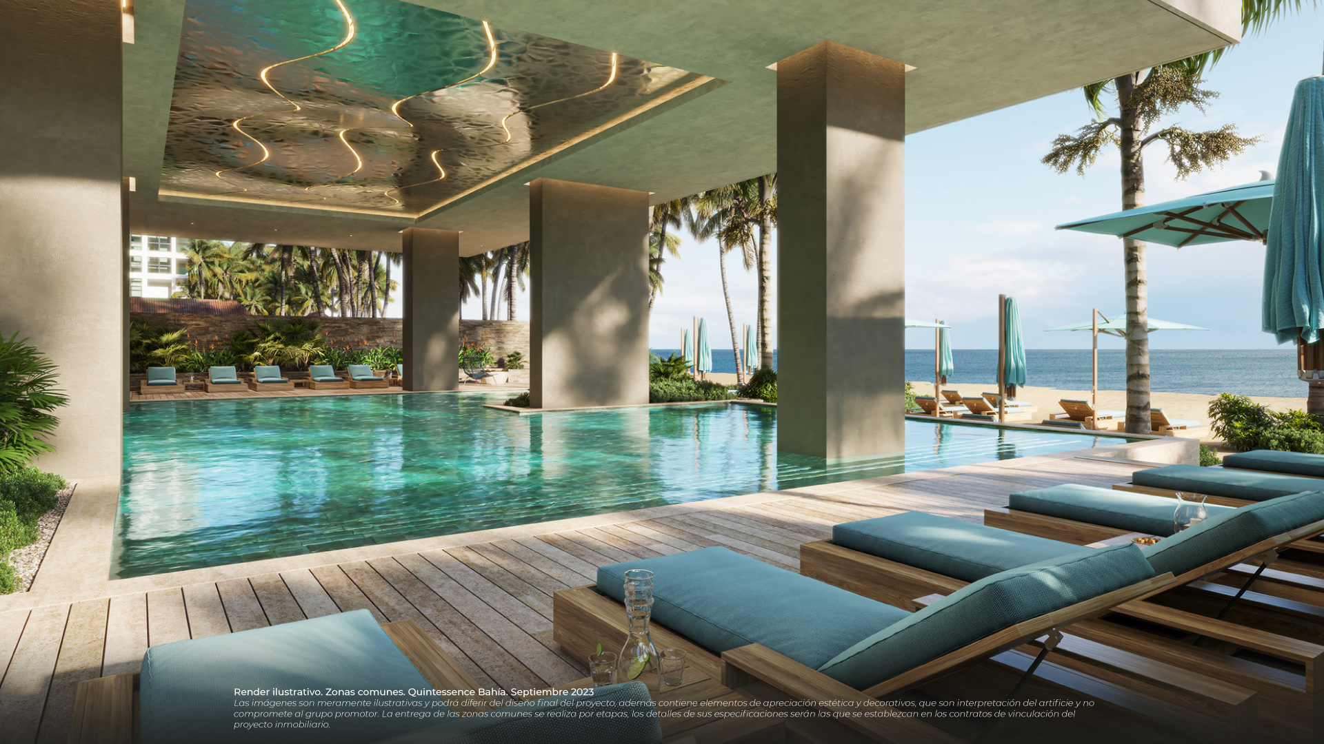 Quintessence Bahía es un proyecto de nuevos apartamentos en venta frente al mar que se caracteriza por ser un objeto arquitectónico único. Apartamentos de lujo con posibilidad de servicios turísticos en primera línea de playa lo cual hace que sea más codiciado y exclusivo.